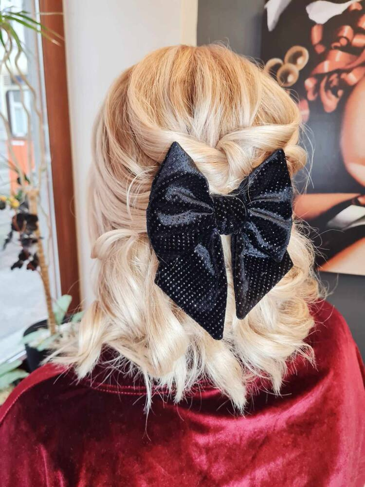 Welurowa spinka do włosów z dużą kokardą. Można łączyć z różnymi stylizacjami, dzięki czemu za każdym razem uzyskasz inny look.