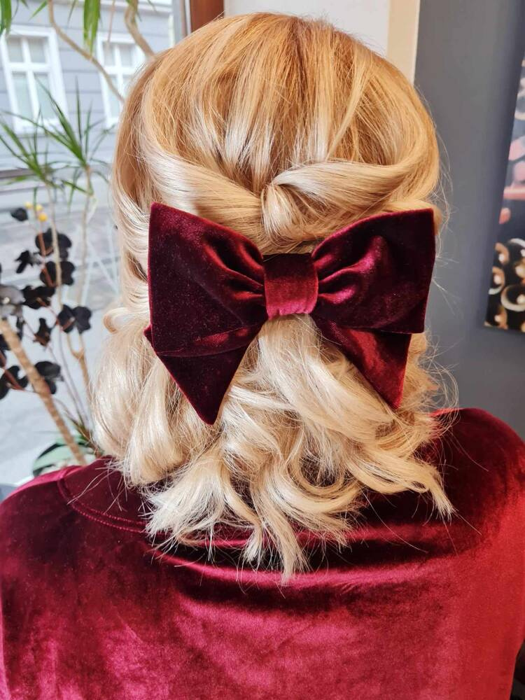 Welurowa spinka do włosów z dużą kokardą. Można łączyć z różnymi stylizacjami, dzięki czemu za każdym razem uzyskasz inny look.