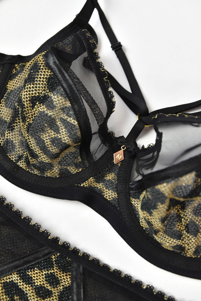 Biustonosz miękki idealnie zbierający piersi. W dekolcie znajduje się ozdobny straps, który można dowolnie odpiąć, co pozwala na personalizację wyglądu biustonosza i dostosowanie go do różnych stylizacji. Obwód biustonosza wykonany z czarnej siatki zapewnia komfort noszenia, a brak bocznych fiszbin dodatkowo zwiększa wygodę i sprawia, że biustonosz idealnie dopasowuje się do sylwetki.
