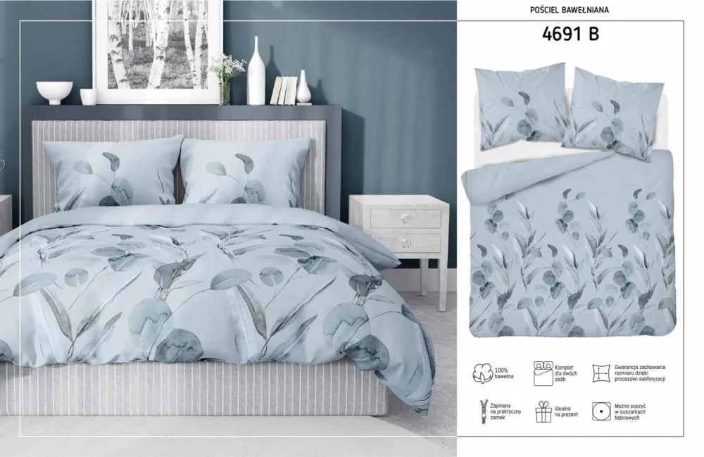 Pościel bawełniana kwiaty 4691 B Detexpol błękitny
