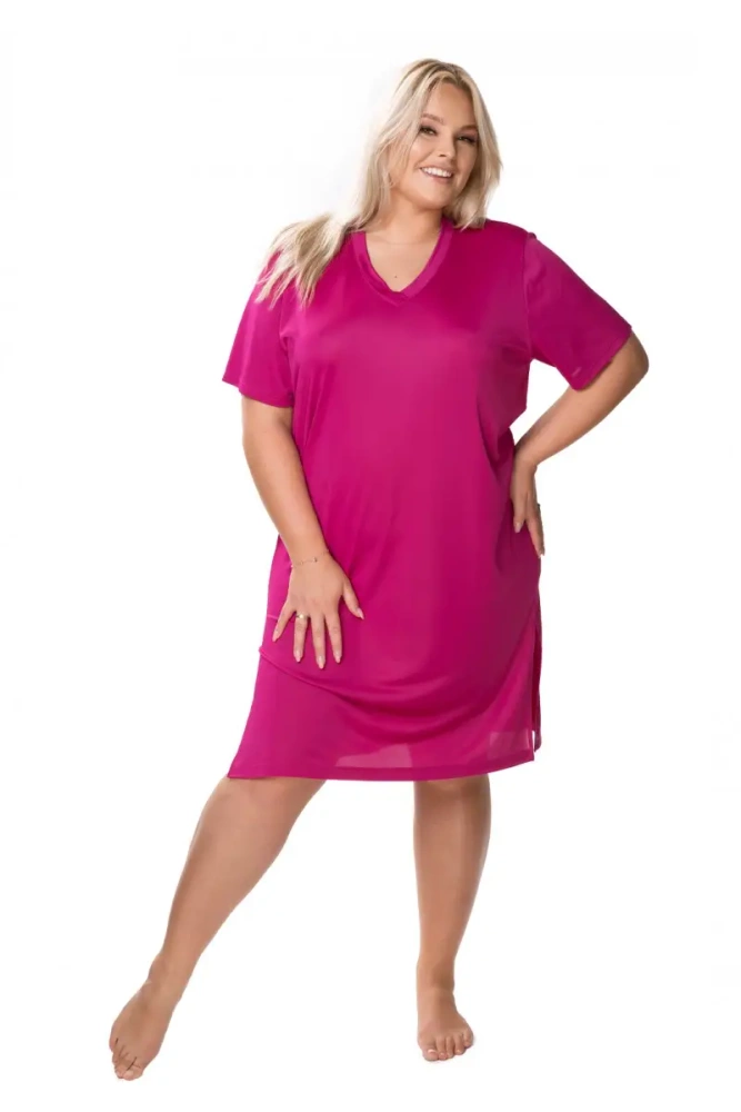 .Koszula nocna to kwintesencja elegancji i komfortu. Klasyczny fason, który podkreśla kobiecą sylwetkę, sprawia, że każda kobieta poczuje się wyjątkowo podczas wieczornego odpoczynku. Jej krótki rękaw dodaje lekkości, idealnie sprawdzając się w cieplejsze noce. Długość do kolan nadaje koszuli ponadczasowego charakteru, a dekolt w szpic dodaje jej delikatnej, kobiecej nuty.