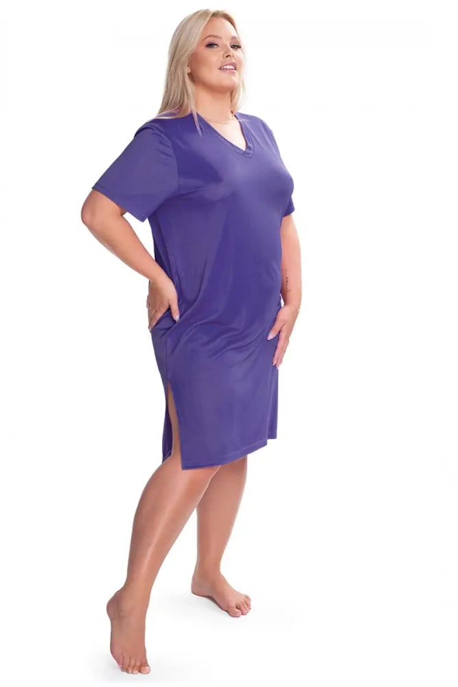.Koszula nocna to kwintesencja elegancji i komfortu. Klasyczny fason, który podkreśla kobiecą sylwetkę, sprawia, że każda kobieta poczuje się wyjątkowo podczas wieczornego odpoczynku. Jej krótki rękaw dodaje lekkości, idealnie sprawdzając się w cieplejsze noce. Długość do kolan nadaje koszuli ponadczasowego charakteru, a dekolt w szpic dodaje jej delikatnej, kobiecej nuty.