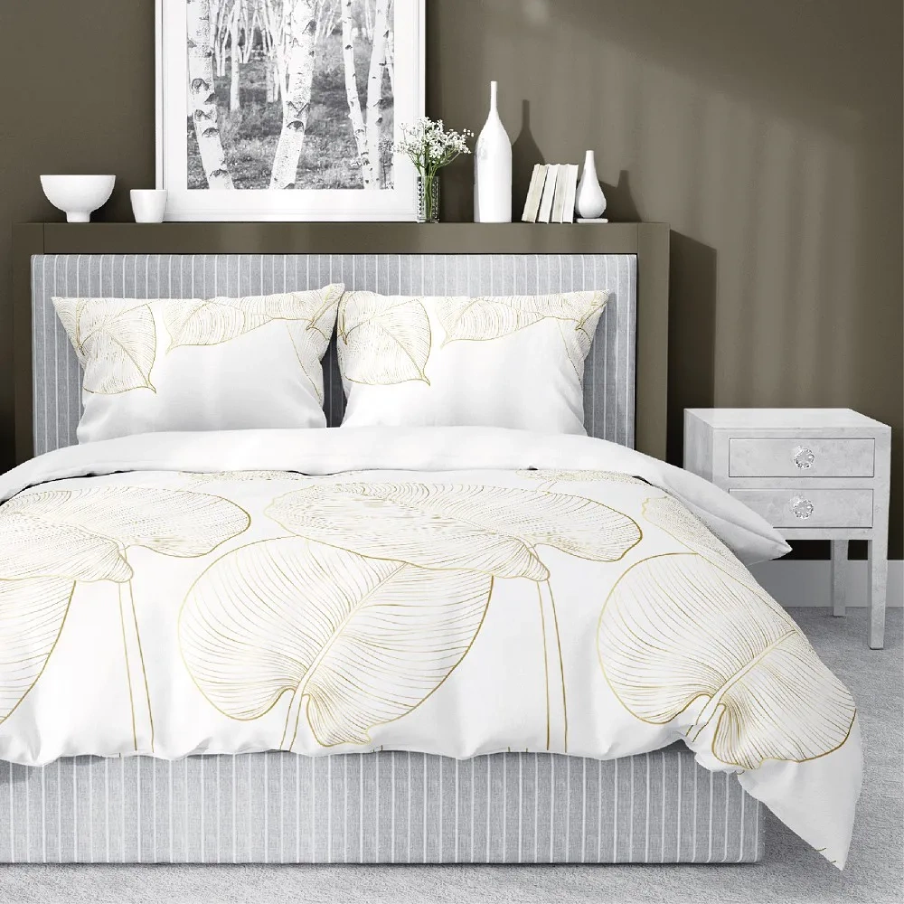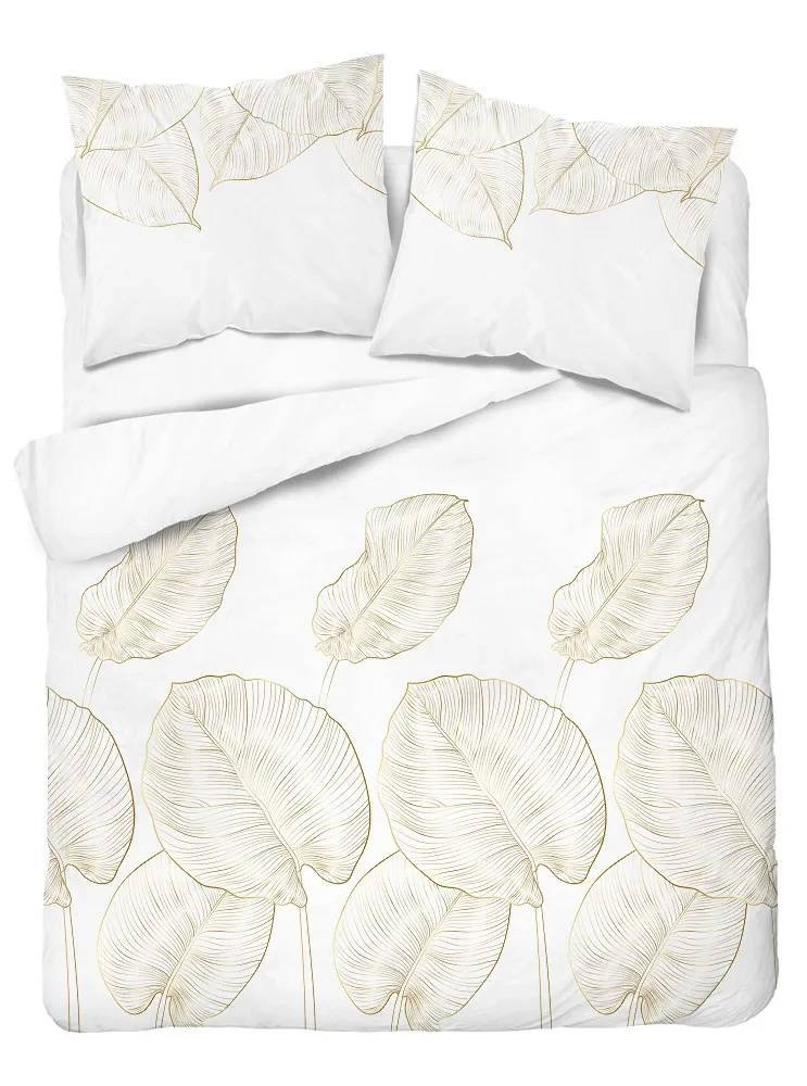 Pościel satynowa 4678 A Home Satin liście Detexpol kremowy