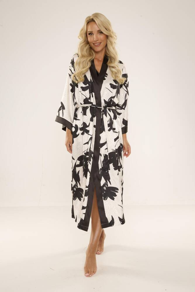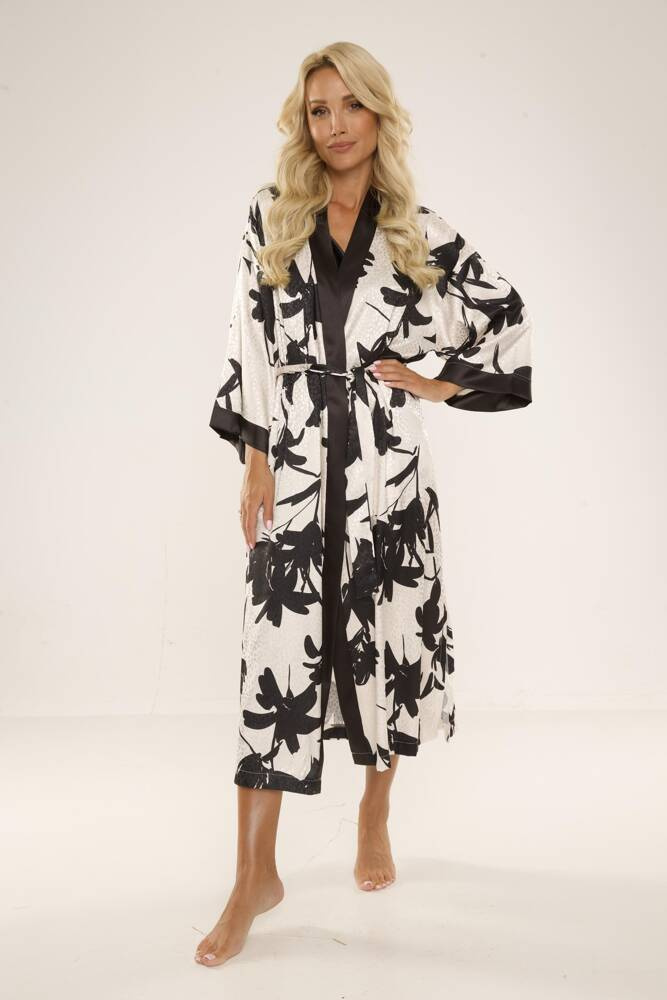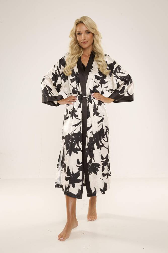 Peniuar z delikatnej satyny z rękawem 7/8, wiązany w pasie. Mankiety lekko rozszerzane. Idealny zestaw z kompletem Brianna.