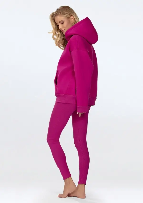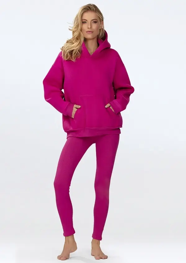 Komplet sportowy składający się z ciepłej bluzy z kapturem oraz legginsów w prążki. Zestawienie zapewnia nie tylko modny look, ale także optymalne wsparcie dla aktywnego trybu życia. Komplet dostępny jest w wielu kolorach, więc możesz wybrać ten, który najlepiej pasuje do Twojego stylu.