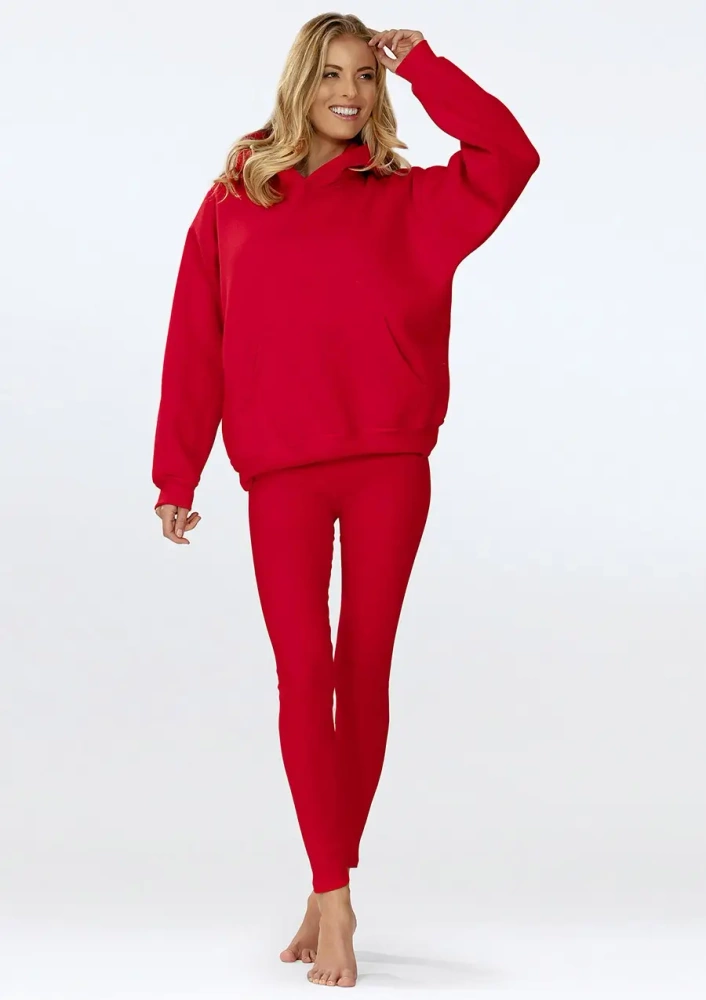 Komplet sportowy składający się z ciepłej bluzy z kapturem oraz legginsów w prążki. Zestawienie zapewnia nie tylko modny look, ale także optymalne wsparcie dla aktywnego trybu życia. Komplet dostępny jest w wielu kolorach, więc możesz wybrać ten, który najlepiej pasuje do Twojego stylu.