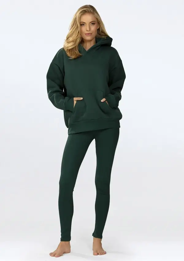 Komplet sportowy składający się z ciepłej bluzy z kapturem oraz legginsów w prążki. Zestawienie zapewnia nie tylko modny look, ale także optymalne wsparcie dla aktywnego trybu życia. Komplet dostępny jest w wielu kolorach, więc możesz wybrać ten, który najlepiej pasuje do Twojego stylu.