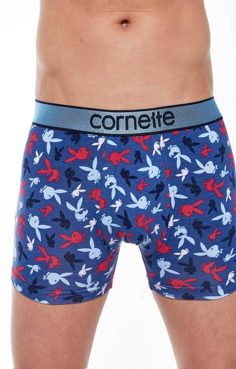 Dopasowane bokserki wykonane z wysokiej jakości wzorzystej bawełny Idealne dopasowanie, bezuciskowe wykończenie nogawek W pasie szeroka, wygodna guma z naszywką logo Cornette.