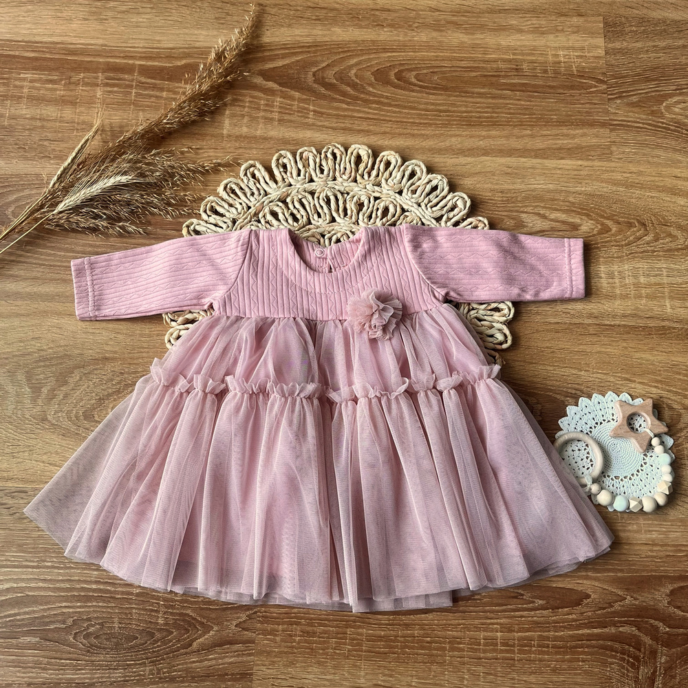 Dziewczęca sukienka z długim rękawem wykonana z wysokiej jakości bawełny. Dół wykończony niezwykle delikatnym tiulem.
