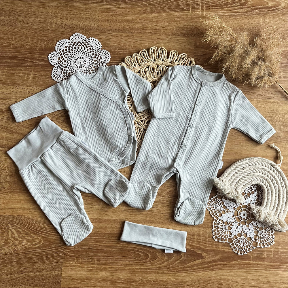 Mamy do zaoferowania komplet niemowlęcy, który składa się z body, półśpiochów, pajaca, opaski. Ubranka zostały wykonane z wysokiej jakości 100% bawełny ozdobione nadrukiem, miłe i przyjemne w dotyku sprawią poczucie bezpieczeństwa.
