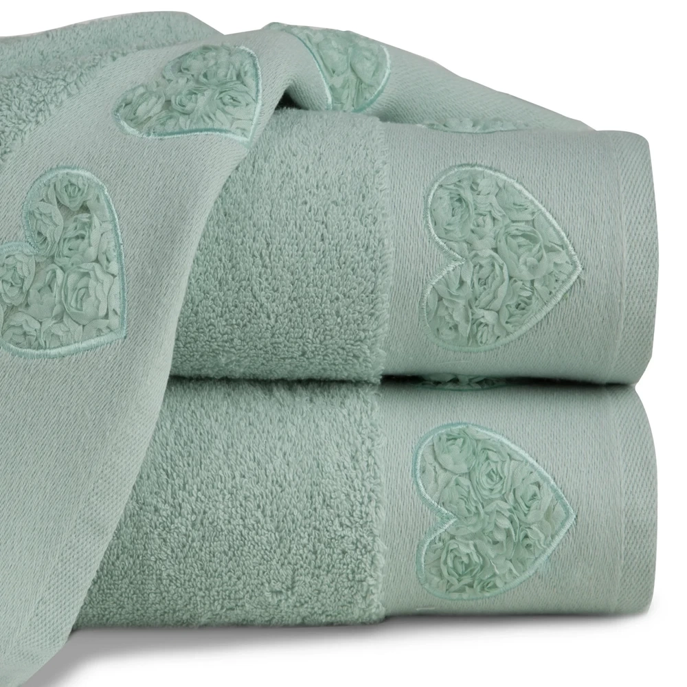 Ręcznik Kamila serca wypełnione różyczkami Eurofirany miętowy