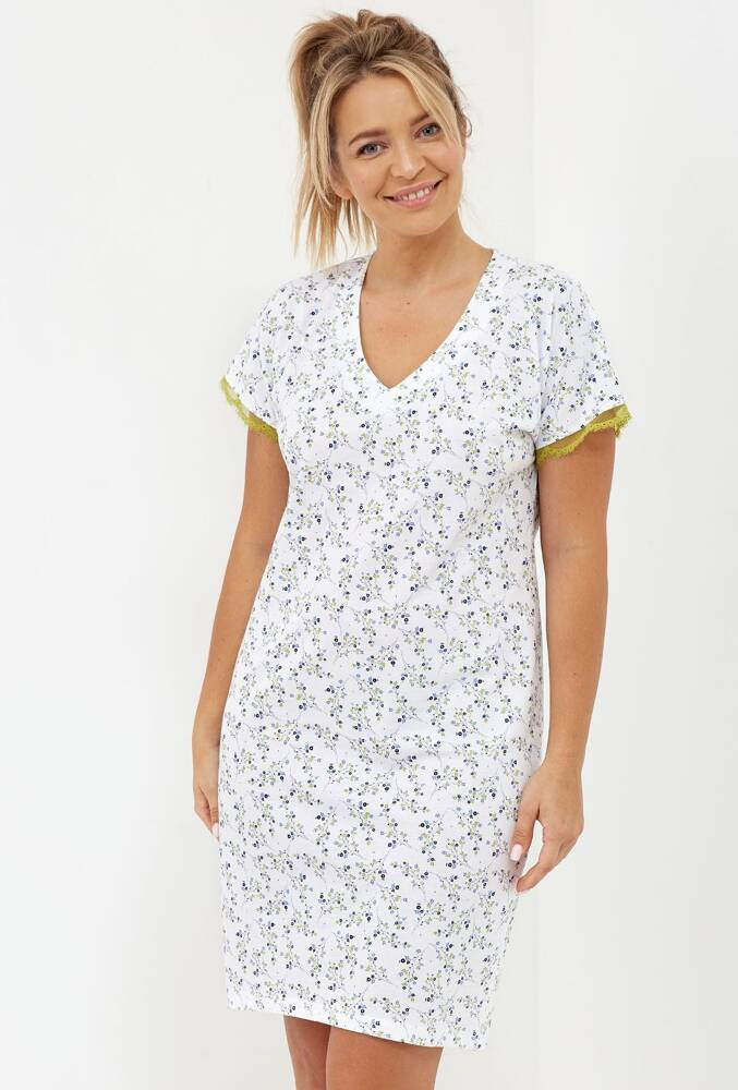 Koszula nocna   wykonana z wysokiej jakości miłej w dotyku bawełny  . Koszulka z krótkim rękawem .