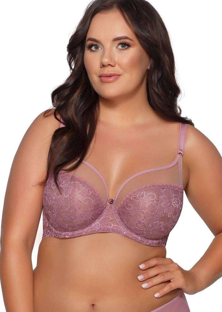 Biustonosz miękki z fiszbinami idealny dla Pań z większym biustem. Miseczki wykonane z koronki i tiulowej siateczki.