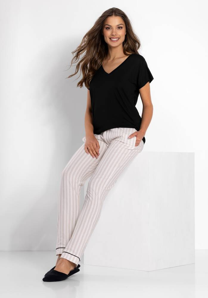 Dwuczęściowa piżamka firmy wykonana z wysokogatunkowej wiskozy i bawełny. Idealna na dobry sen i na wspaniały początek dnia przy pierwszej porannej kawie.
