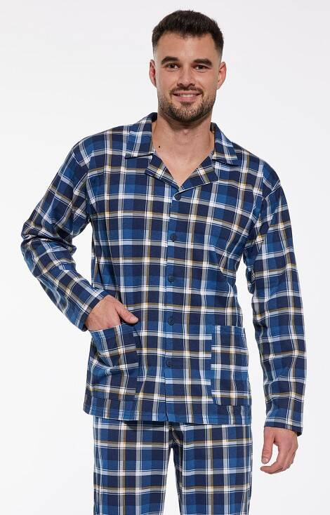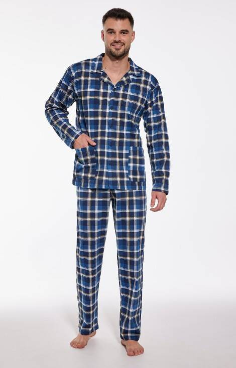 Piżama męska rozpinana z długim rękawem i długimi spodniami.