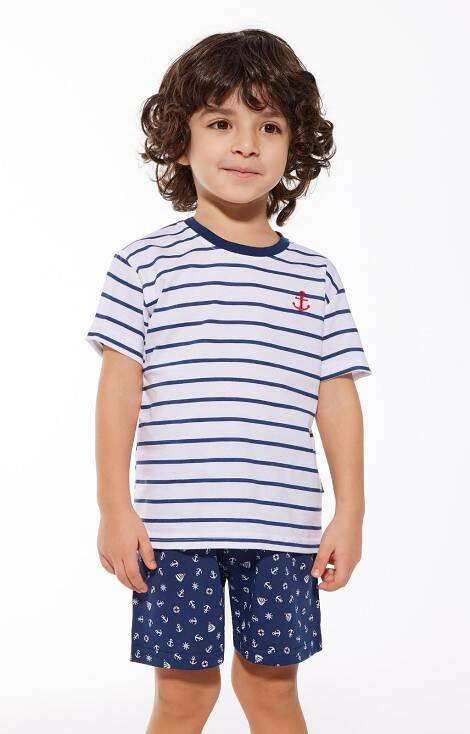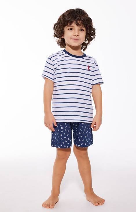 Piżama chłopięca 801/111 802/111 Marine Cornette biały-granatowy