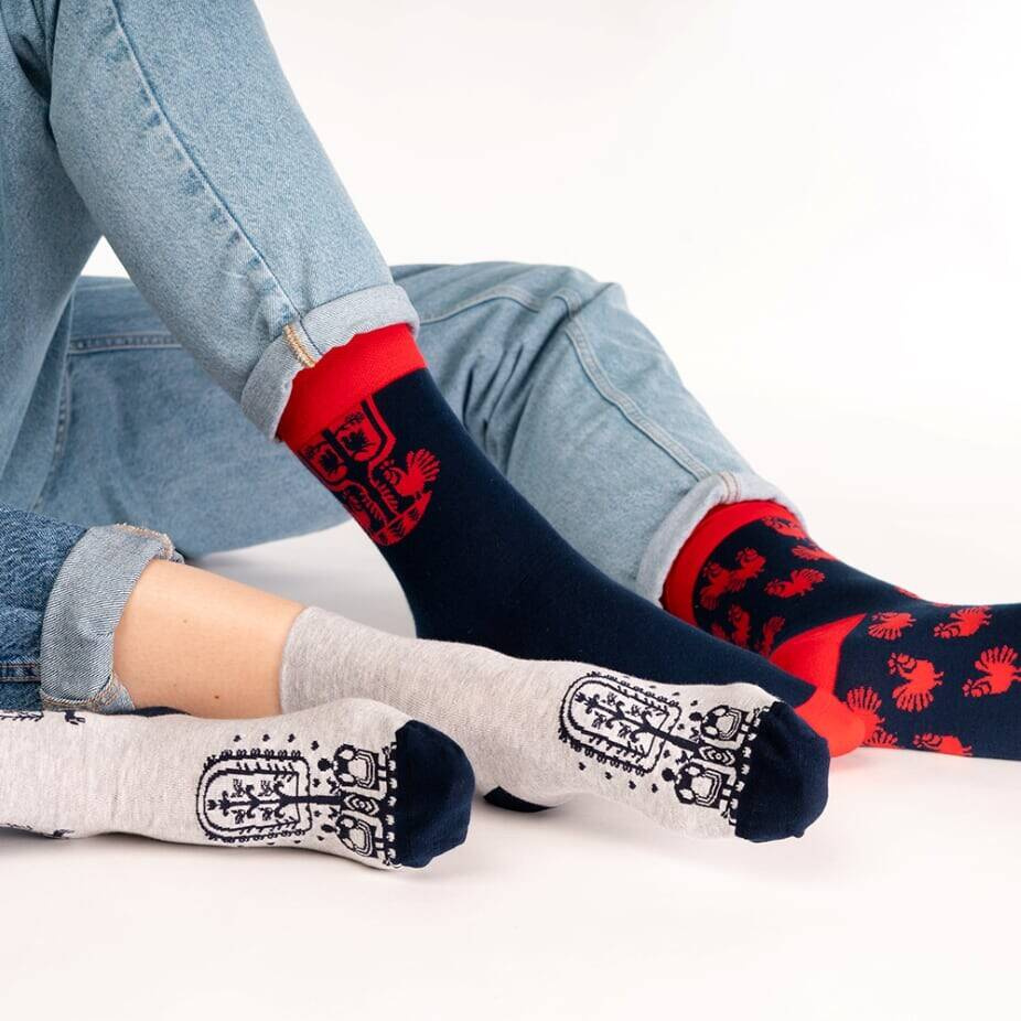 Wzorzyste, komfortowe skarpety męskie wykonane z wysokiej jakości bawełny.