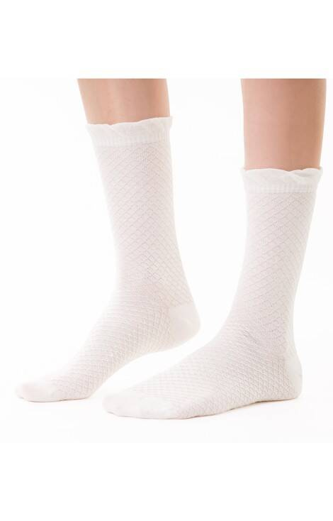 Wzorzyste skarpetki damskie z wysokiej jakości bawełny. Posiadają bezuciskowy ściągacz w formie falbanki. Idealny dodatkowe do eleganckich lub casualowych stylizacji.