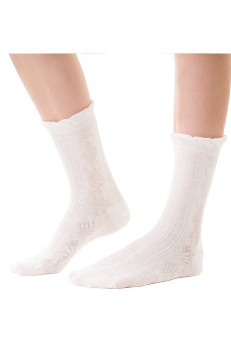 Wzorzyste skarpetki damskie z wysokiej jakości bawełny. Posiadają bezuciskowy ściągacz w formie falbanki. Idealny dodatkowe do eleganckich lub casualowych stylizacji.