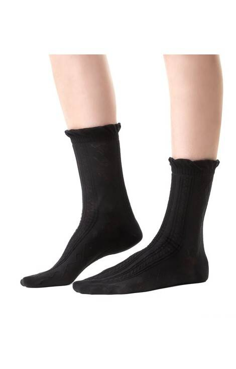 Wzorzyste skarpetki damskie z wysokiej jakości bawełny. Posiadają bezuciskowy ściągacz w formie falbanki. Idealny dodatkowe do eleganckich lub casualowych stylizacji.