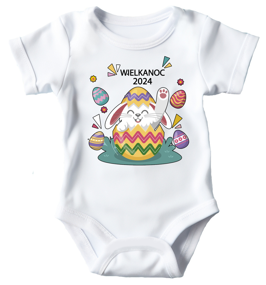 Body krótki rękaw "Wielkanoc 2024 z króliczkiem" Moocha biały