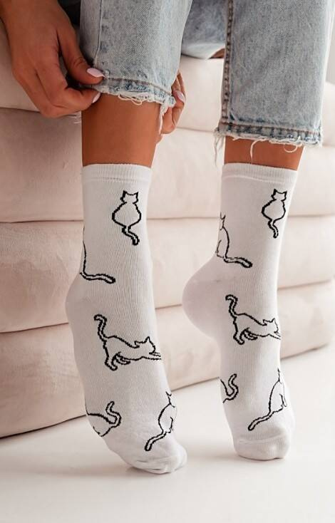 Bawełniane skarpetki damskie ozdobione wzorem kotka.
