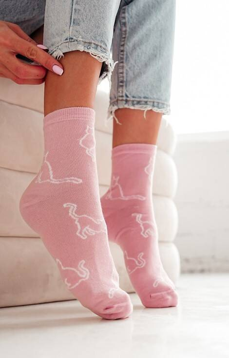 Bawełniane skarpetki damskie ozdobione wzorem kotka.
