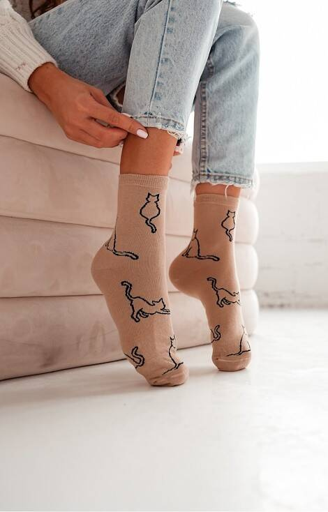 Bawełniane skarpetki damskie ozdobione wzorem kotka.