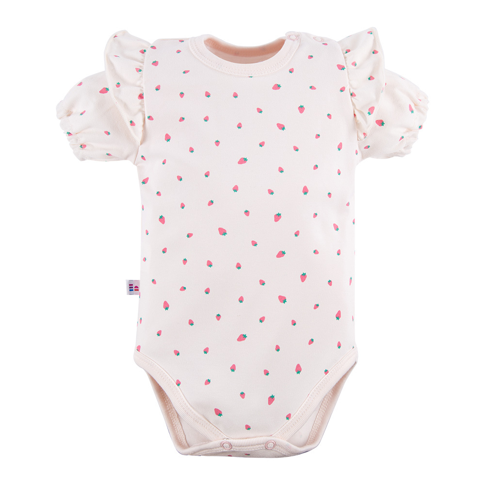 Body niemowlęce z krótkim rękawem z nadrukiem truskawek.