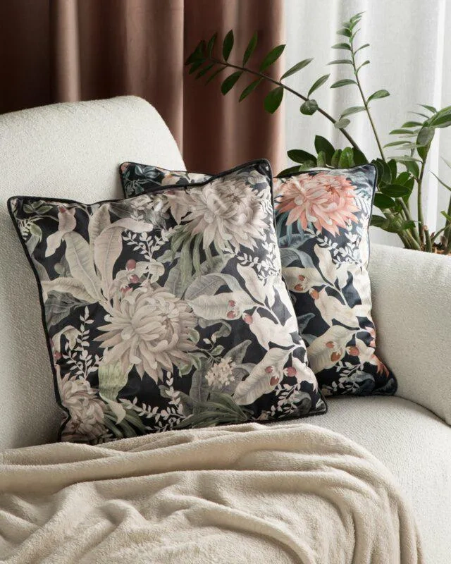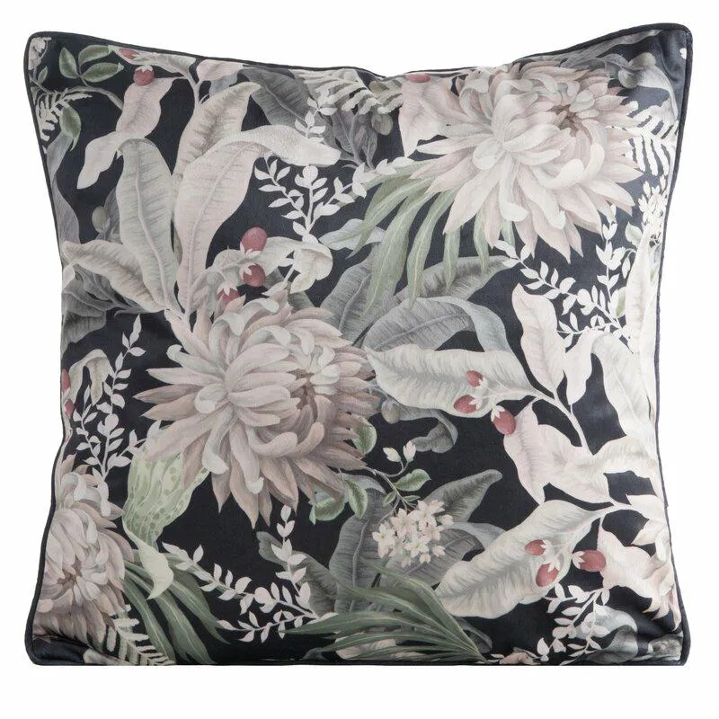 Poszewka welurowa kwiaty Velvet 114 Eurofirany czarny/beż