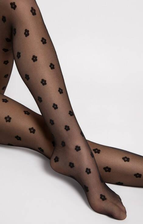 Rajstopy z delikatnym wzorem małych kwiatków.  Bez wzmocnień na palcach. Grubość 20 den.