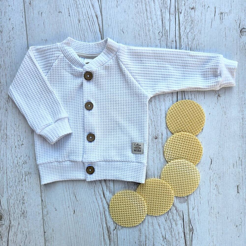 Rozpinana bluza wykonana z dzianiny wafel.  Swobodny krój zapewnia dziecku komfort noszenia i nie krępuje ruchów podczas zabawy. Wygodne rozpięcie umożliwia wygodne ubieranie malucha. Bluzę można dowolnie łączyć ze wszystkim ubrankami z kolekcji Natural Waffel, tworząc unikatowe stylizacje.