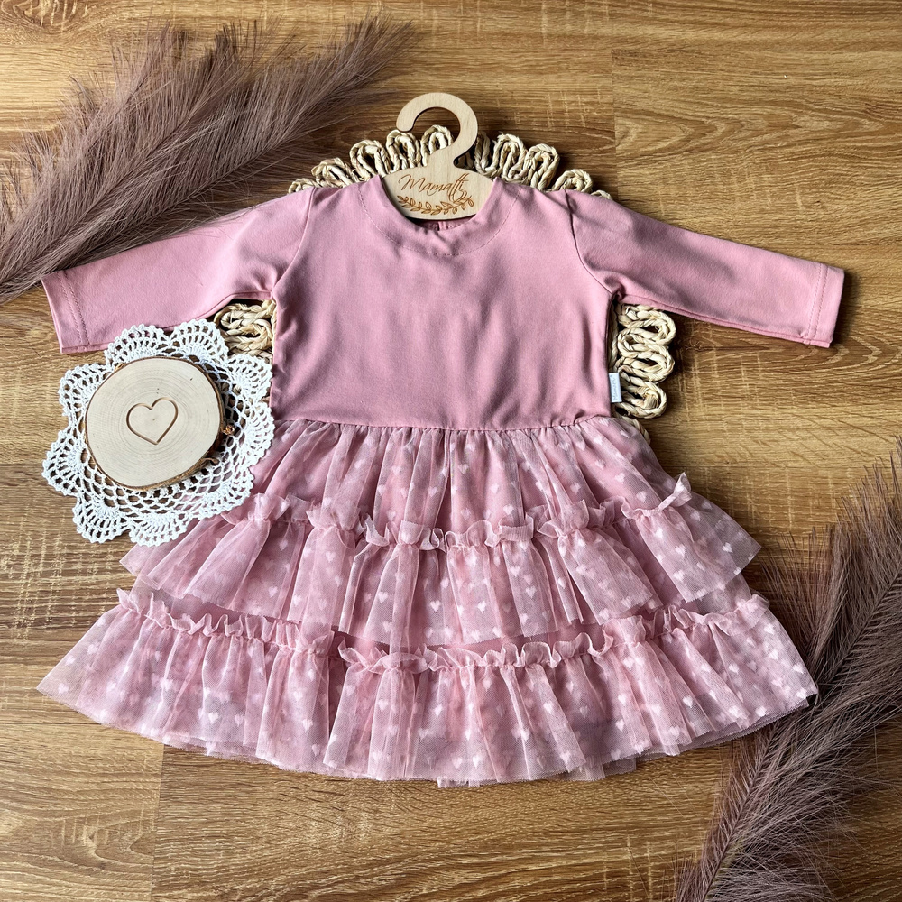 Dziewczęca sukienka z długim rękawem wykonana z wysokiej jakości bawełny. Dół wykończony niezwykle delikatnym tiulem.
