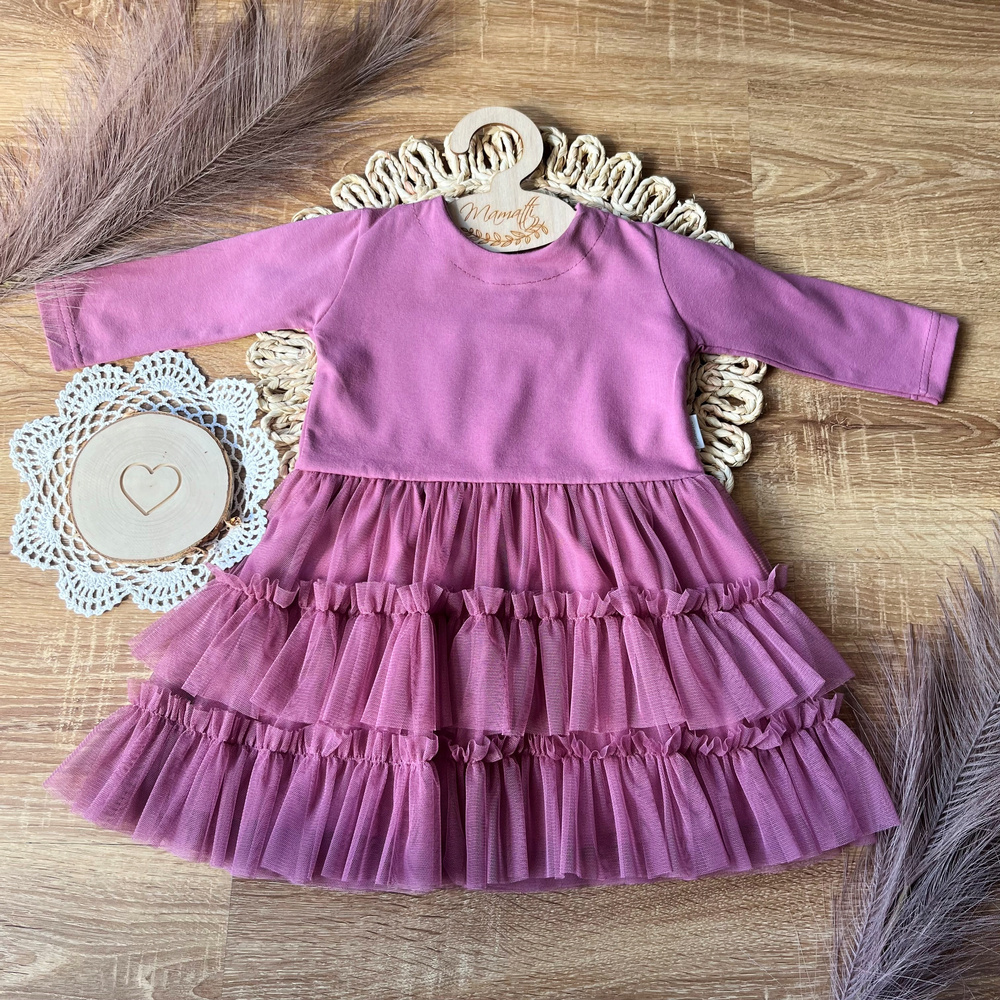 Dziewczęca sukienka z długim rękawem wykonana z wysokiej jakości bawełny. Dół wykończony niezwykle delikatnym tiulem.