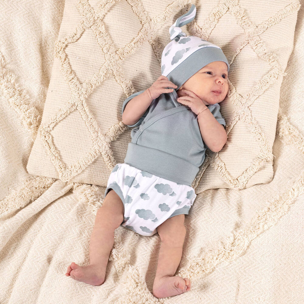Chustka na głowę, idealna na gorące dni. Materiał posiada certyfikat Oeko-Tex Standard 100 Tekstylia godne zaufania. Wykończony ściągaczem, który dobrze dopasuje się do główki dziecka. Produkt jest wygodny i przewiewny, będzie idealnym dopełnieniem kolekcji Liam.
