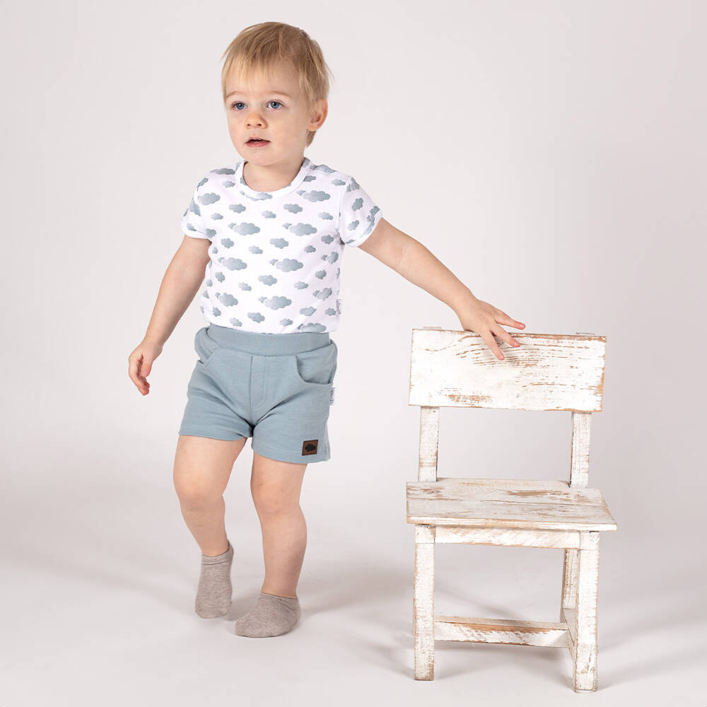 Krótkie spodenki wykonane ze 100% bawełny, całkowicie bezpiecznej dla dziecka.