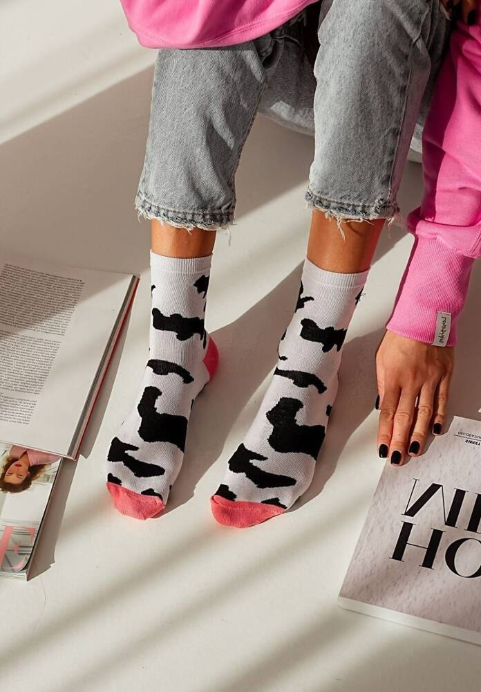 0200-104 Krówki Skarpety damskie Milena -biały czarny 02