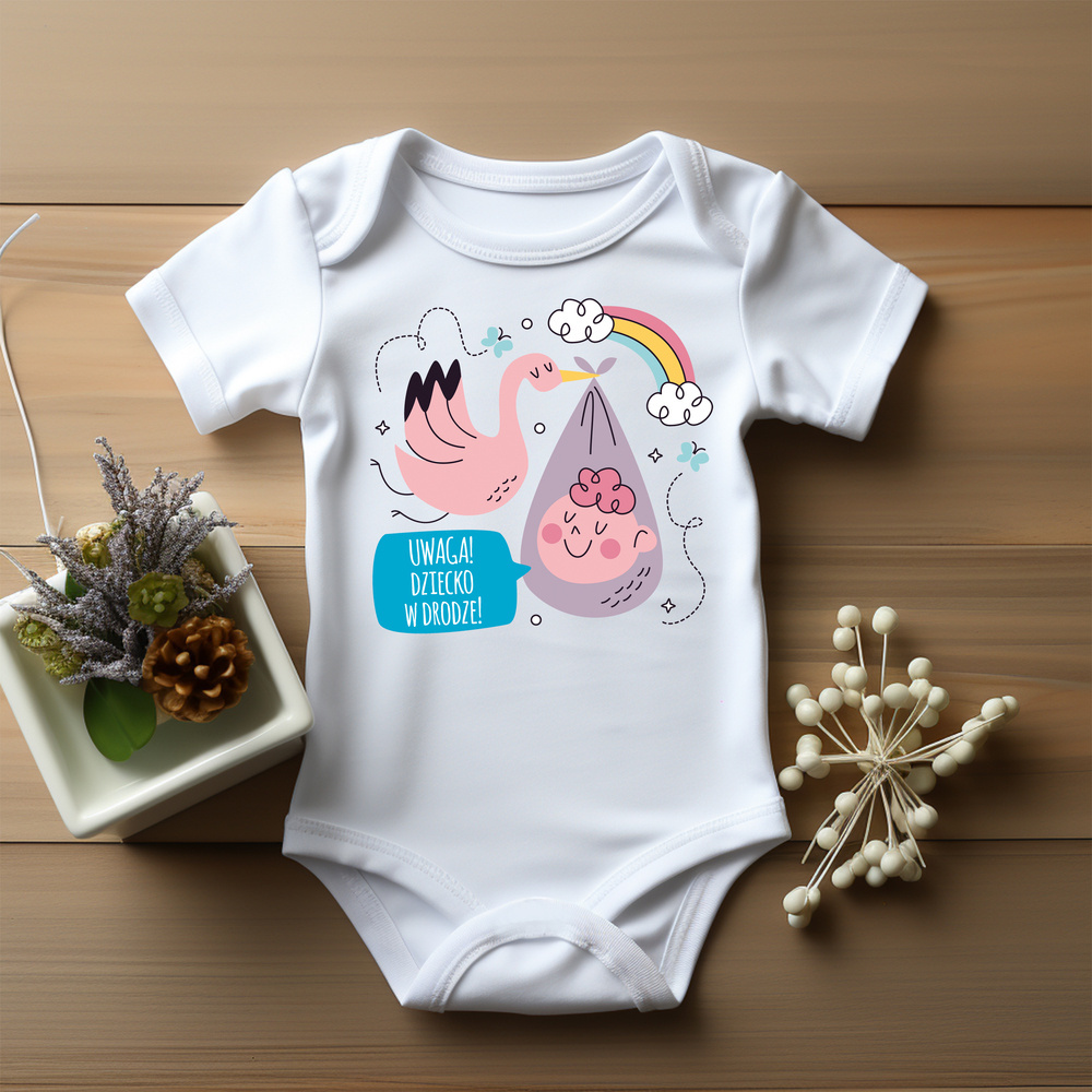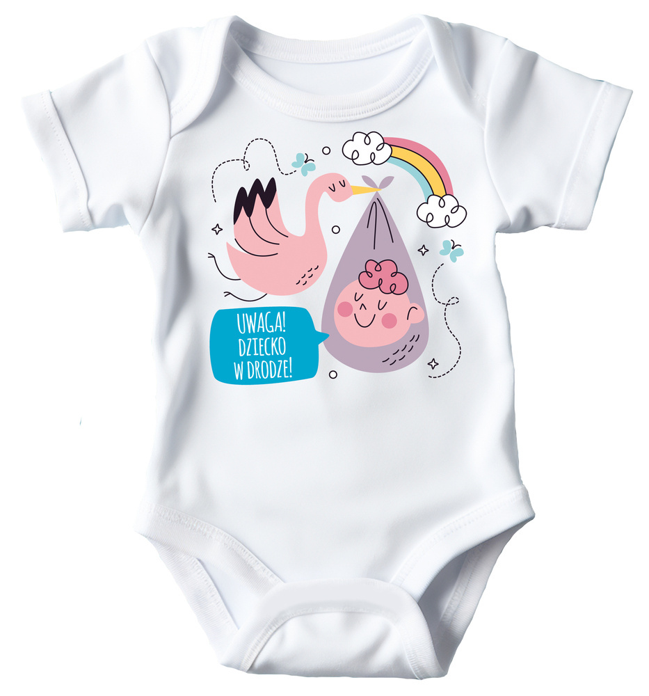 Body krótki rękaw "Uwaga dziecko w drodze" Moocha biały