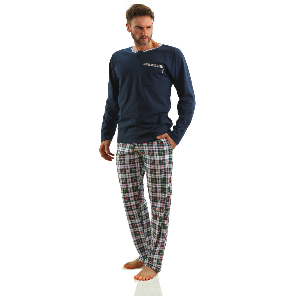 Zachwycająca swoją prostotą piżama męska to idealne propozycja w nadchodzącym sezonie. Zaprojektowana i uszyta z dbałością każdy element i sposób wykończenia zapewnia wysoką jakość i trwałość. Wykonana została w 100% z bawełny, tym samym gwarantując skórze komfort i przyjemność.
