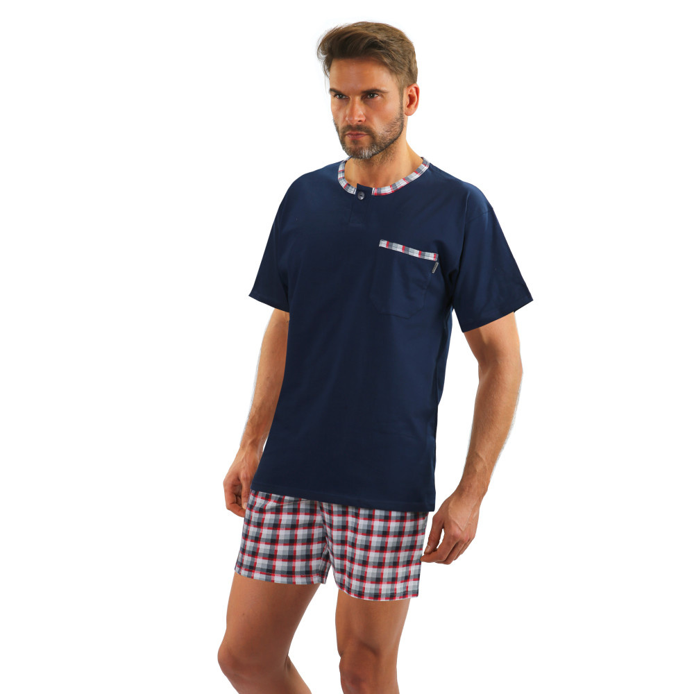 Bawełniana piżama męska, krótki rękaw i spodenki Jasiek Sesto Senso - granatowy
