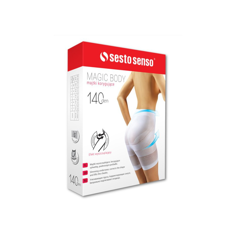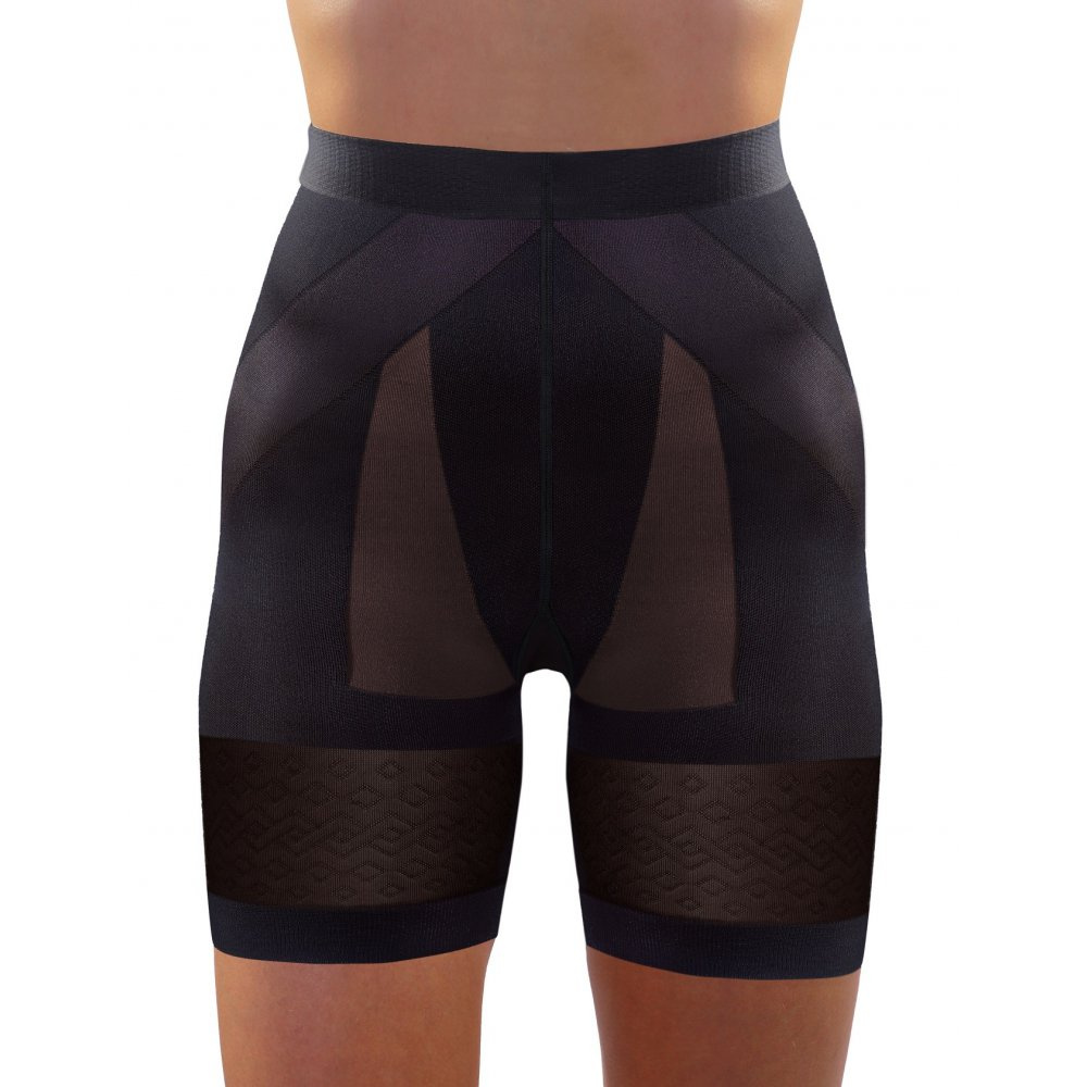 Szorty jednocześnie spłaszczają brzuch, modelują biodra, wyszczuplają uda oraz podnoszą pośladki dając efekt push-up. Zapewnia to szczupły wygląd i pięknie wymodelowaną sylwetkę. Wkomponowany w talii elastyczny pas zapewnia wygodę użytkowania i nie krępuje ruchów. Dzięki bezszwowej technologii produkcji oraz cienkiej tkaninie bielizna pozostaje dyskretna i niewidoczna pod ubraniem.