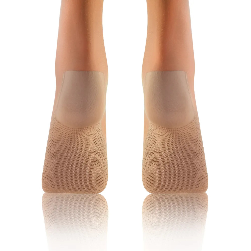Podkolanówki z profilaktycznym efektem masażu stóp i bez uciskowym ściągaczem. Grubość 20 Den. Nie uciskają, są półmatowe, przezroczyste. Specjalna technologia ułożenia materiału w okolicach spodu stopy sprawia, że doświadczamy efektu delikatnego masażu stóp. Idealnie sprawdzają się do biura, ale też u osób, które mają kłopoty z krążeniem.