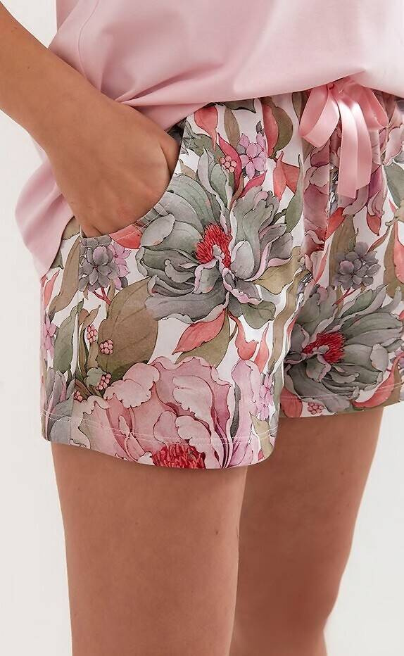 Do kompletu wzorzyste spodenki z kieszeniami