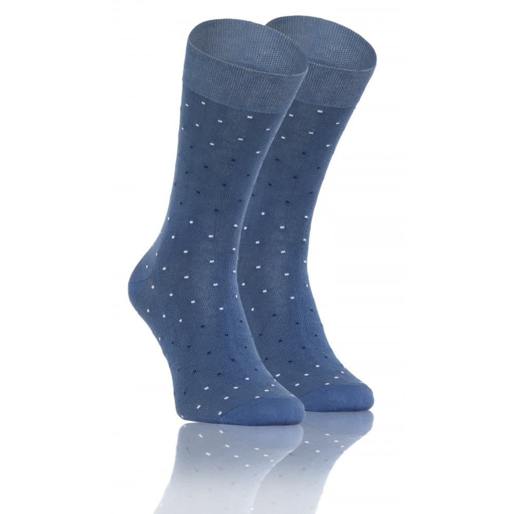 Classic Skarpety męskie garniturowe Sesto Senso wzór kropki jeans