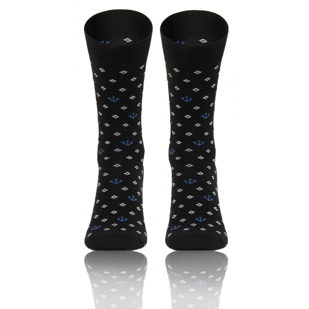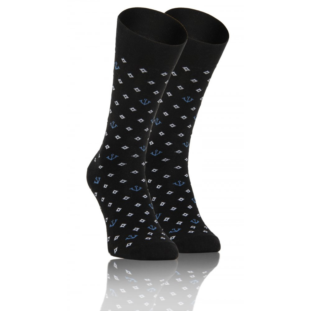 Classic Skarpety męskie garniturowe Sesto Senso wzór kotwice czarny
