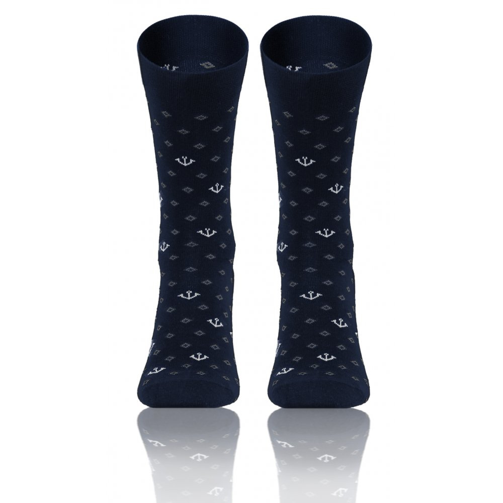 Classic Skarpety męskie garniturowe Sesto Senso wzór kotwice granatowy