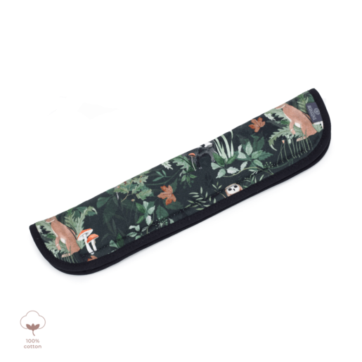 Ochraniacz na pałąk wózka, wykonany z miękkiej dzianiny bawełnianej, zapewniający komfort i ochronę podczas spacerów. Nowy kształt osłonki doskonale dopasowuje się do pałąka wózka, a bawełniana lamówka nadaje jej estetyczny wygląd. Wewnętrzna część ochraniacza wyposażona jest w ukryte zapięcie na rzep, a wypełnienie z antyalergicznej, lekkiej silikonowej włókniny zapewnia dodatkową miękkość.