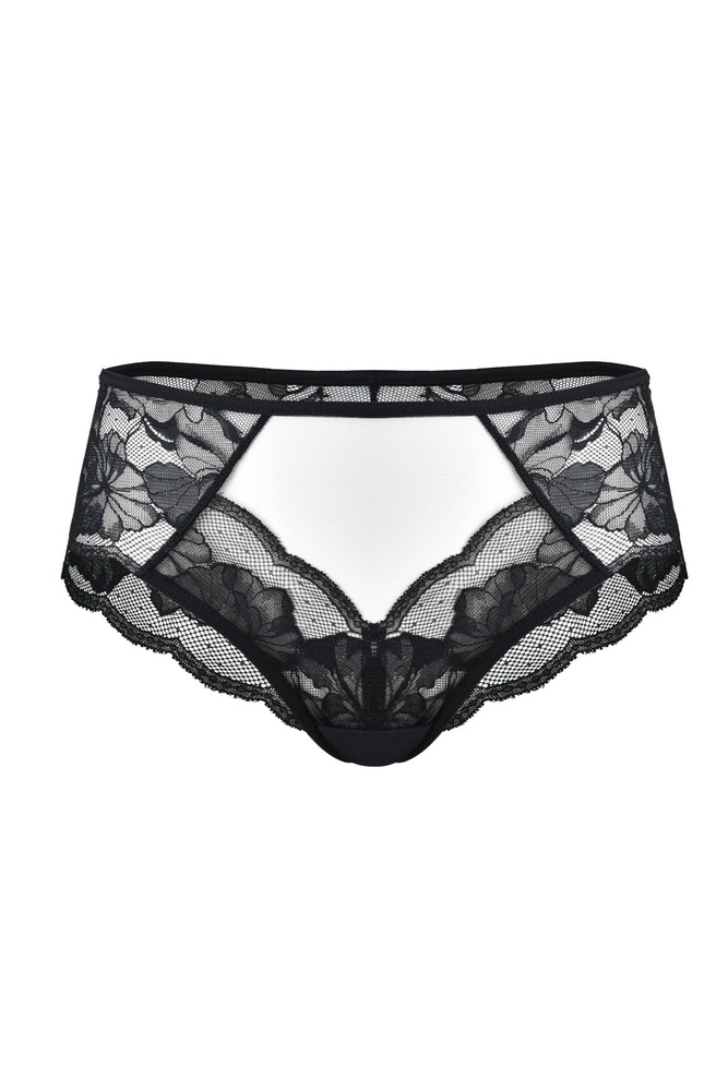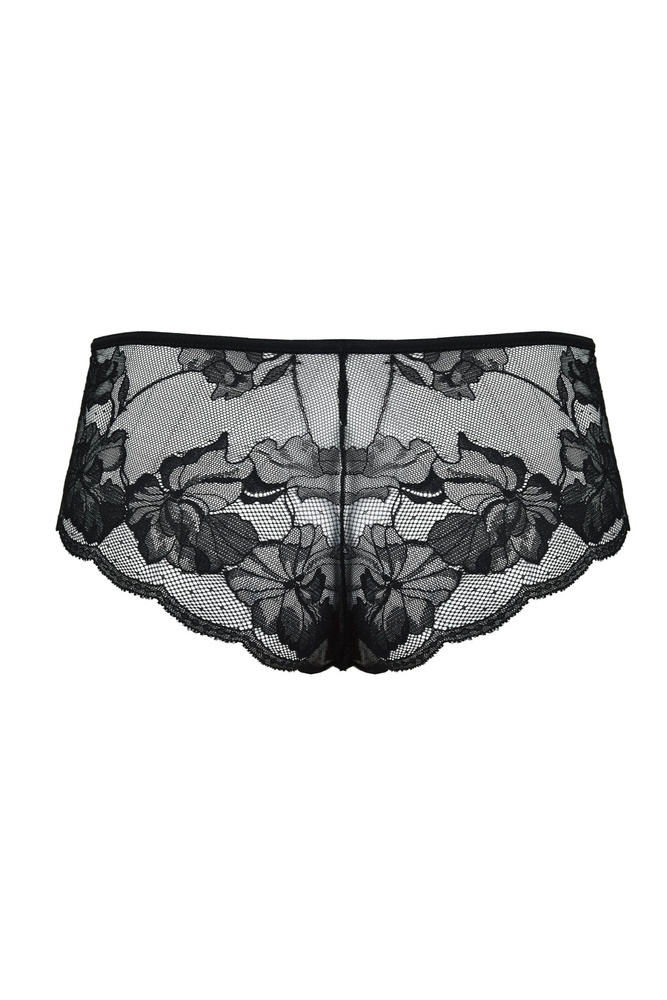 Figi typu brazyliany. Tył całego modelu jest ozdobiony koronką, dodając mu delikatny i kuszący wygląd. Koronkowe zdobienia nadają mu subtelnego uroku i elegancji.