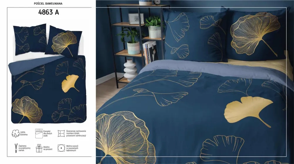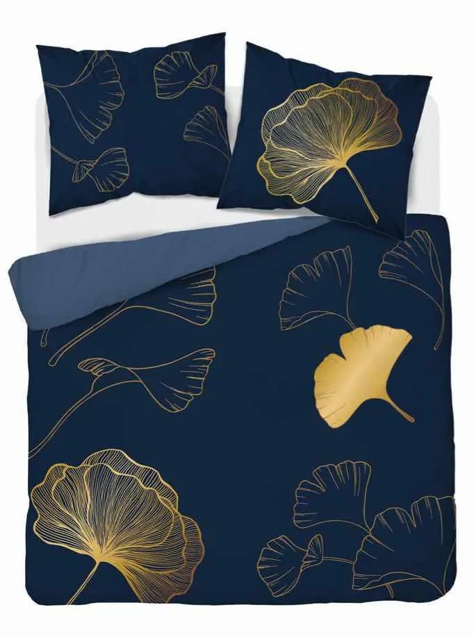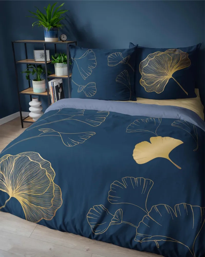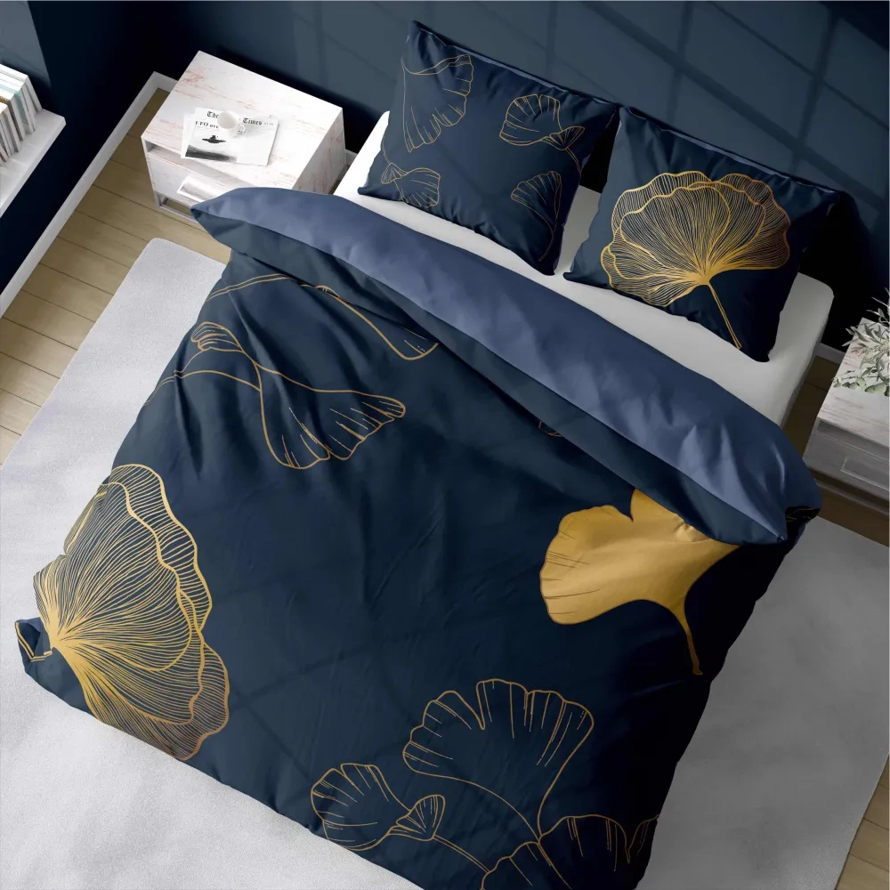 Pościel bawełniana 4863 A Holland liście miłorzębu Detexpol granatowy