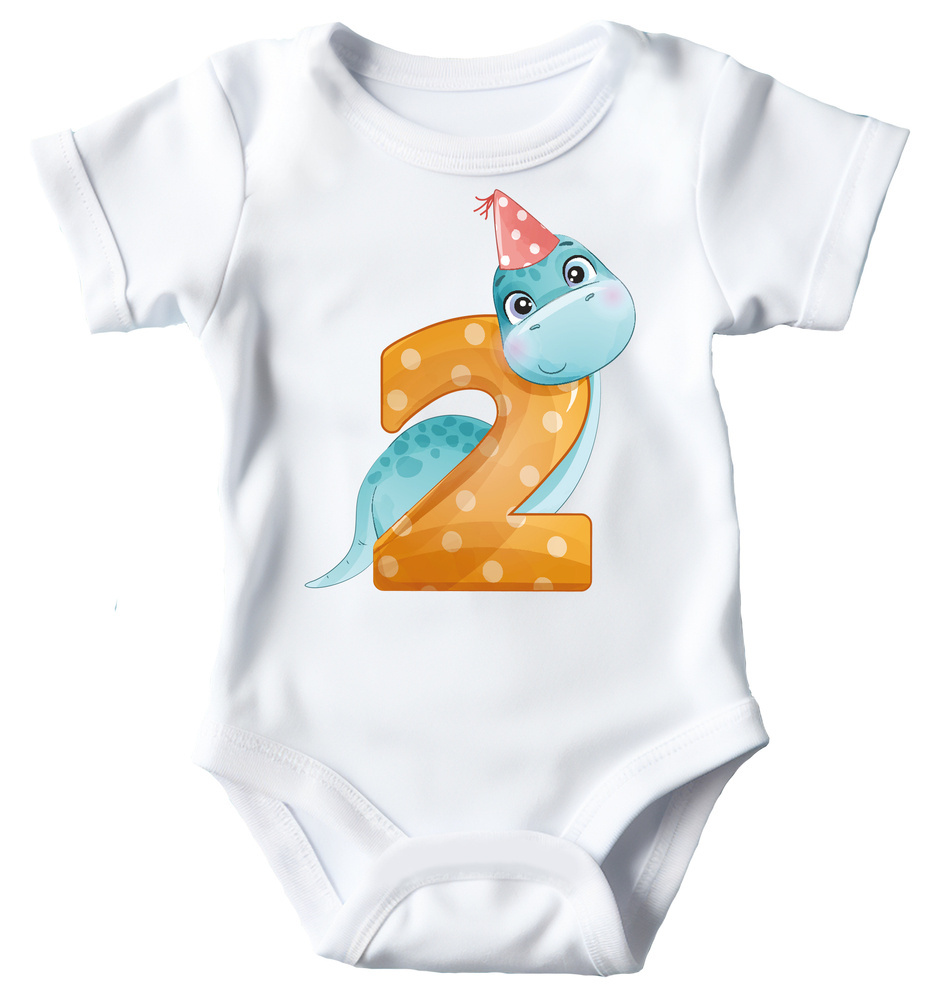 Body krótki rękaw "Urodziny Dino 2 latka" Moocha biały